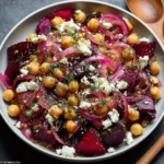 A nutritious and delicious salad featuring chickpeas, roasted beets, and feta cheese, perfect for any occasion.