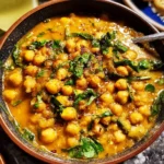 This cozy chickpea curry shines when served with fluffy rice or warm naan. As you dig in, you’ll find creamy coconut milk enveloping tender chickpeas, bursting with flavors of spices and fresh herbs. For an extra zing, a slice of lime or a sprinkle of extra cilantro on top adds the perfect touch.