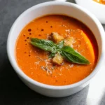 A cozy and heartwarming creamy tomato basil soup bursting with fresh flavors, perfect for chilly evenings.