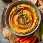 Pumpkin hummus brings together the heartiness of chickpeas and the seasonal charm of pumpkin. Rich in fiber and vitamins, it’s a comforting yet healthy dip that can complement any gathering, whether it’s a cozy night in or a festive celebration. Plus, it perfectly embodies the flavors of the season.