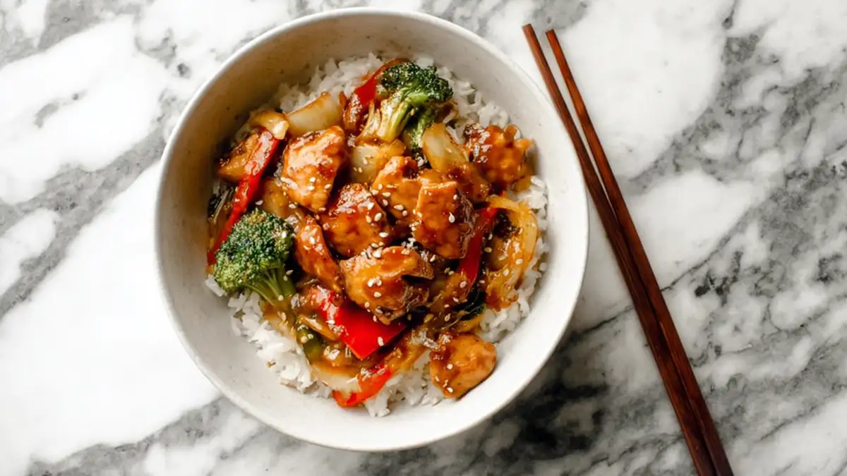 A delightful and quick teriyaki chicken stir fry with vibrant veggies, perfect for busy weeknight dinners.