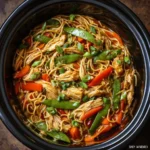 A comforting and easy Slow Cooker Chicken Lo Mein recipe, packed with tender chicken and fresh vegetables in a savory sauce.