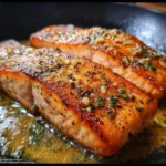 A delightful pan seared salmon recipe with crispy exterior and tender flesh, brightened with lemon and garlic.